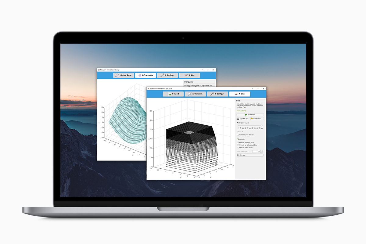 MATLAB application to generate paths for 3D printing using adaptive layer slicing and curved layer slicing